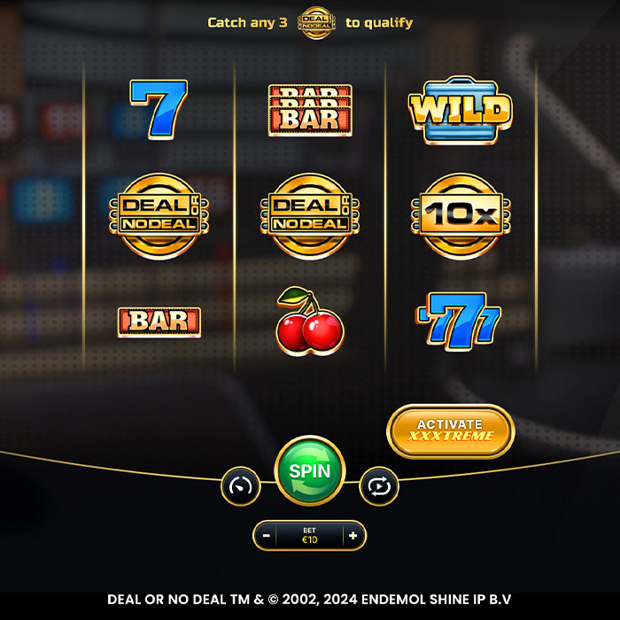 The Deal or No Deal action starts with the improved Qualification phase, where you play the 3×3 reel slot and aim to land three scatter symbols in one spin to qualify for the live Bonus game. These scatters can sometimes feature multipliers up to 10x, enhancing your potential winnings.