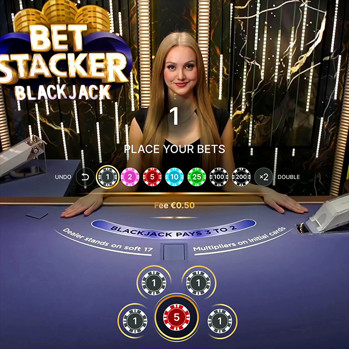 A 10% Bet Stacker fee is applied to the main bet. However, this fee does not apply to ‘Double’ and ‘Split’.